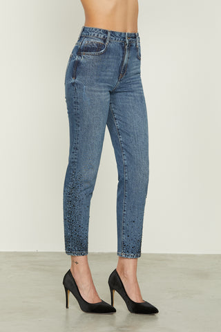 Jeans NOBILE vita alta 5 ts più strass fondo denim