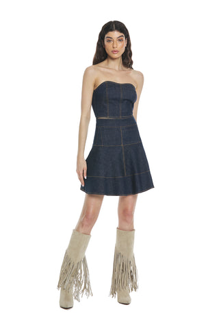 Abito BARETT corto manica a sbuffo 3/4 chemisier con cintura più balza denim