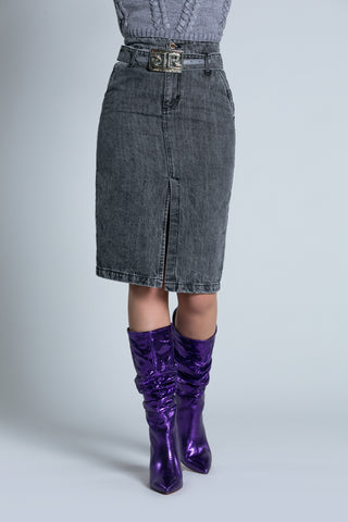 Longuette ALTIRESA vita alta con spacchi più cintura logo denim black