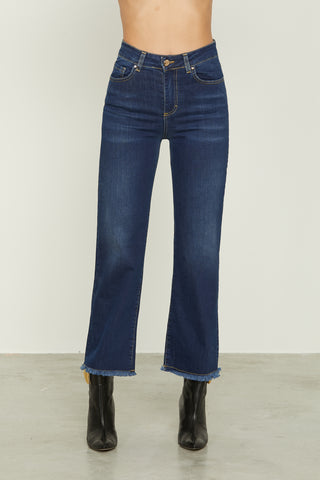 Jeans VICL vita alta crop 5 tasche sfrangiato denim