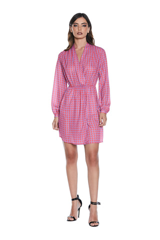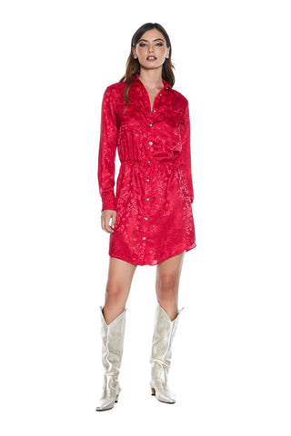 Abito FUNNY corto manica lunga chemisier con tasche più arriccio vita jacquard fiori