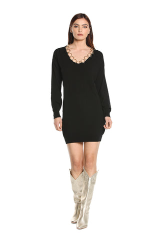 Abito RINGSTER corto manica lunga scollo ampio con applicazione anelli