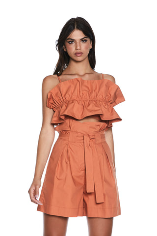 Crop-Top OFFURV con bretelle più arriccio più volant seno