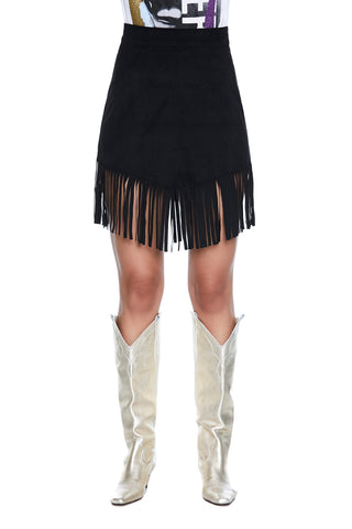 Gonna JOY corta con punta più frange ecocamoscio
