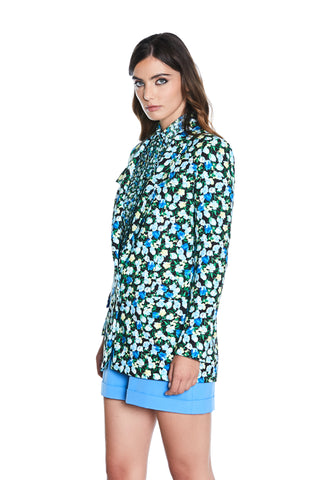 Giacca QUANDOTU lunga manica lunga 1 bottone con tasche fantasia fiori