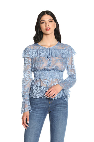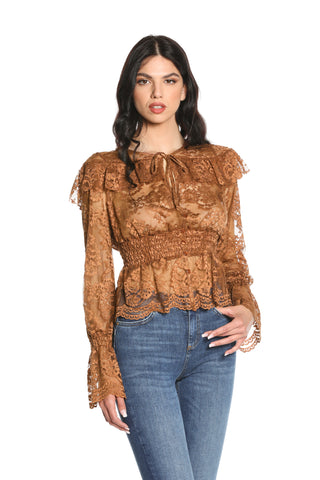 Blusa CIP manica lunga con arriccio più nastrino con pinces più volant schiena