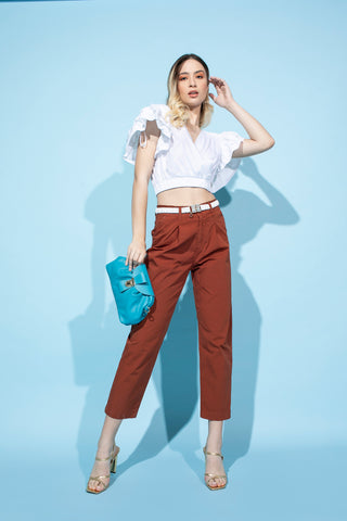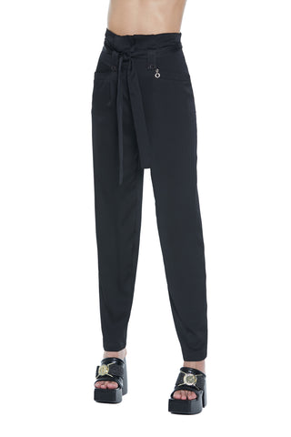 Panta HANIKO_BIS vita alta con arricci più passanti più cintura