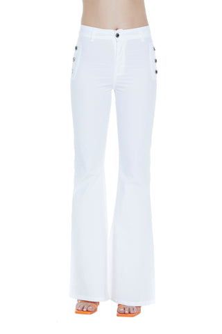 Panta MAYU_COLOR vita alta zampa con tasche più patte più bottoni