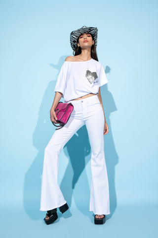 Pantalone LINJA vita alta zampa 5 tasche fondo sfrangiato drill
