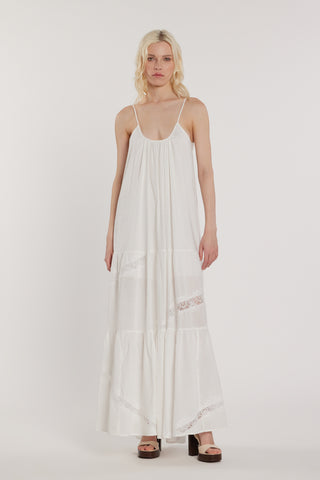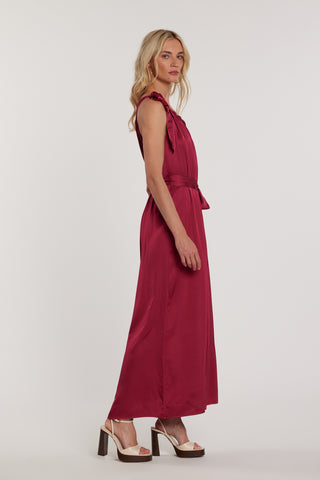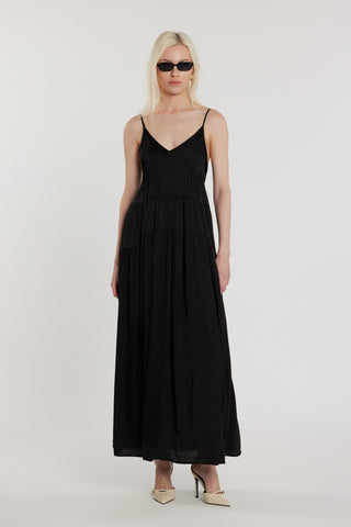 Abito MANNYS lungo smanicato con arricci più balze in raso