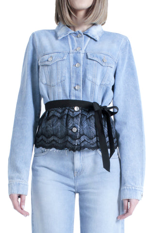 Giubbino WILLY_20 maniche lunghe con tasche più cintura più inserti pizzo slim fit denim blu