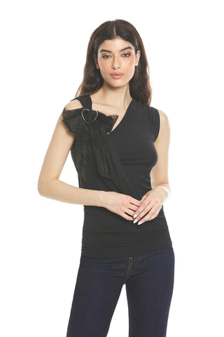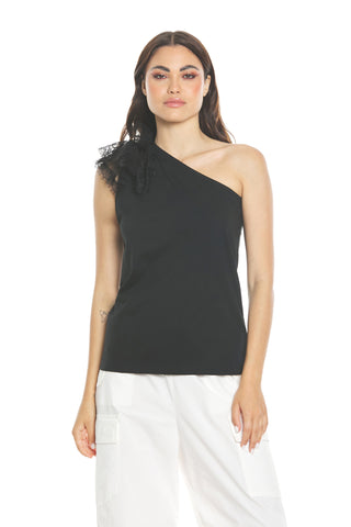 Canotta CAELUM monospalla con inserto pizzo più tulle