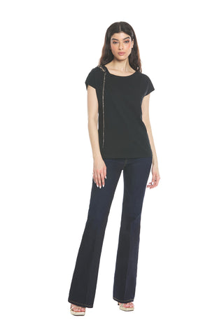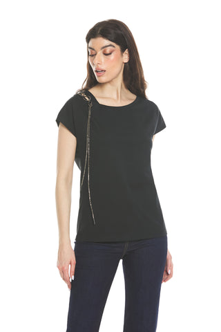 T-shirt HYDRUS mezza manica scollo barca con laccio strass