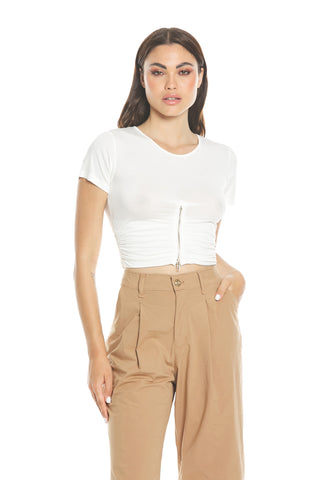 T-shirt AWATIF corta mezza manica con arricci più zip