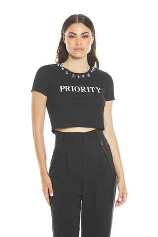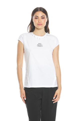 T-shirt ARIES mezza manica con ricamo più applicazione cristalli