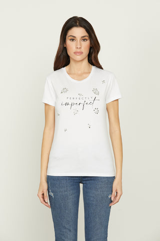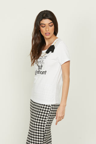 T-shirt FRECCIATINA mezza manica con stampa più collana con perle più nastro