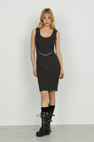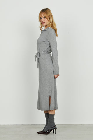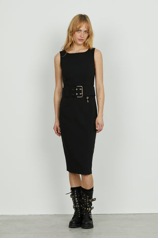 Abito PATMO corto manica lunga con bordi a contrasto scollo a v più cintura con fibbia alamaro