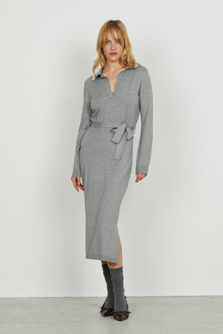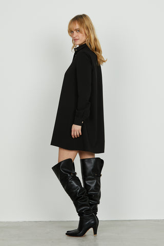 Abito MAUI corto manica lunga scollo v con colletto più applicazione strass più cintura