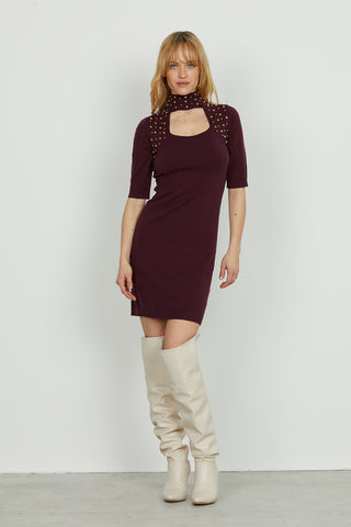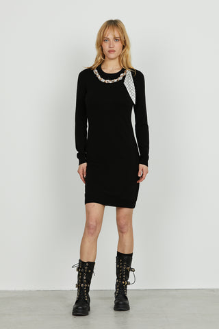 Abito CERRYS corto manica lunga scollo v con colletto più applicazione strass più perline
