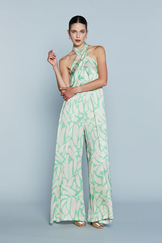 Tuta FORTALEZA con Top più Pantalone Vita Alta Palazzo Raso Ric. Fiori Paillettes