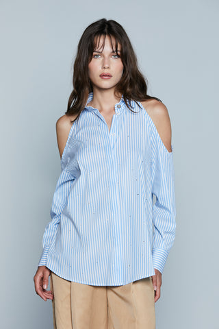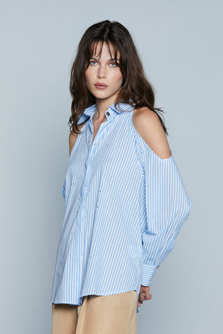 Camicia ORIHUELA Lunga M/L con Apertura Spalle più Ricamo Logo più Strass Righe