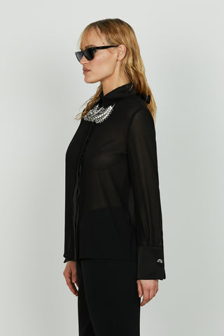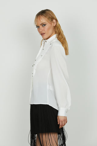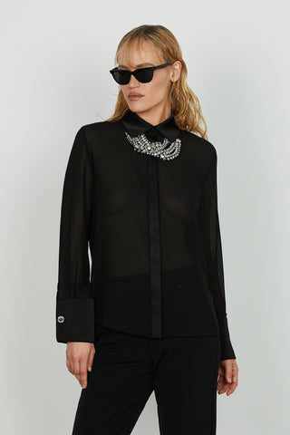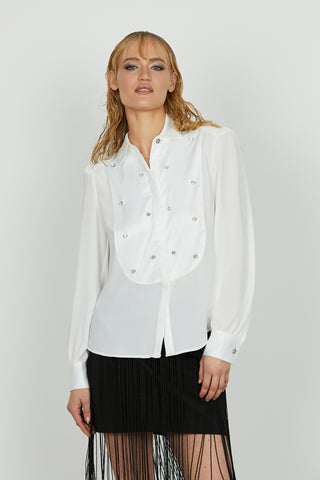 Camicia VULEC manica lunga polsini più collo raso più collana strass con fusciacca