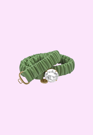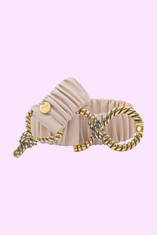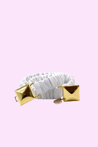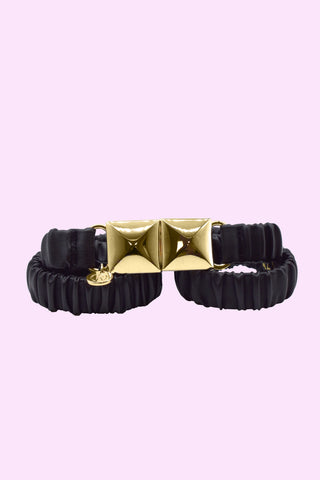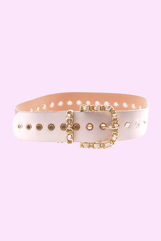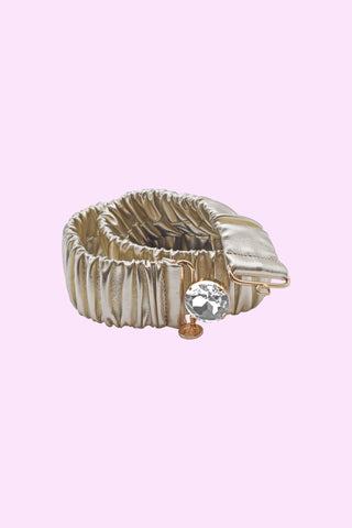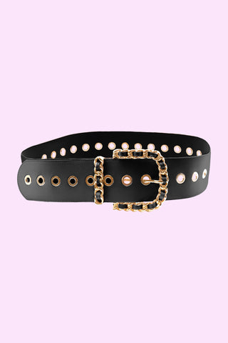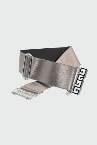 PHYLLIS_LAMI high belt with curls plus round laminated eco-leather cabochon