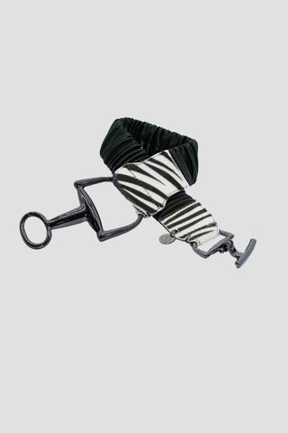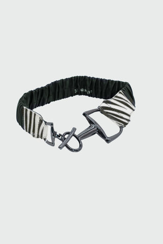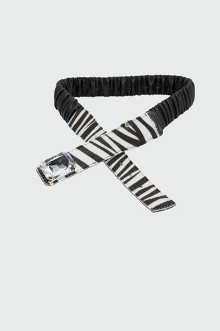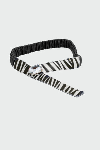 PRINTLE_MACULATO belt with elast. Plus rider buckle plus eco animalier insert.