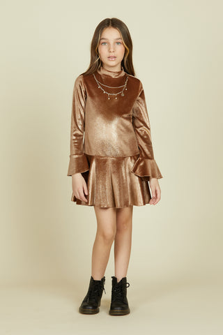 MILA short ruffled long sleeve dress with lurex chenille necklace