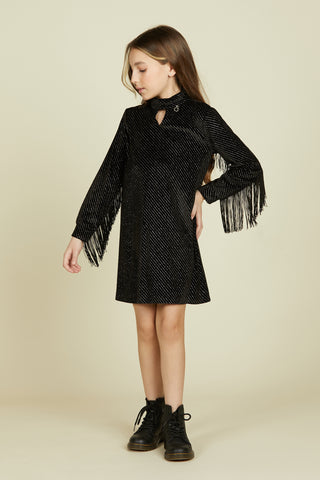 GHOBIN short long sleeve dress with full rhinestone fringes