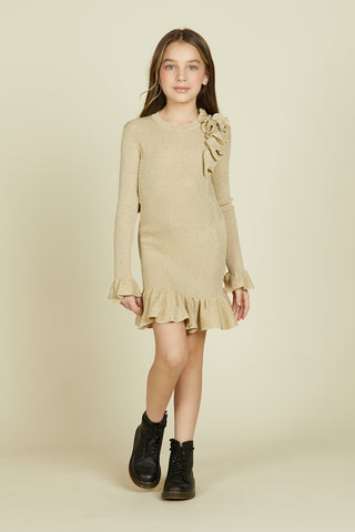 DALILA short, long-sleeved dress with ruffle flounce and ruffles with lurex button
