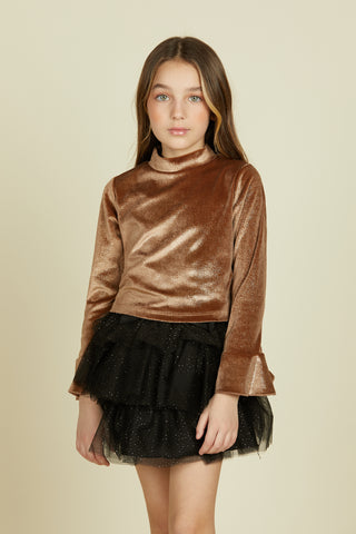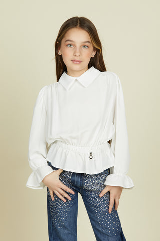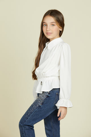 SHIRA long sleeve blouse with lurex chenille ruffles