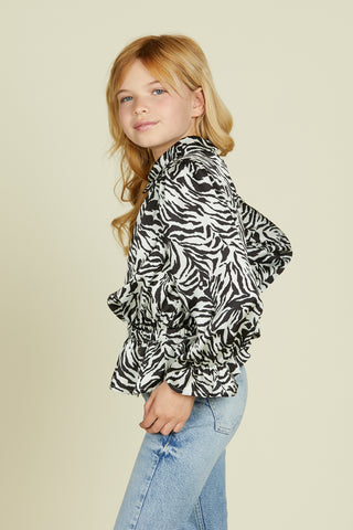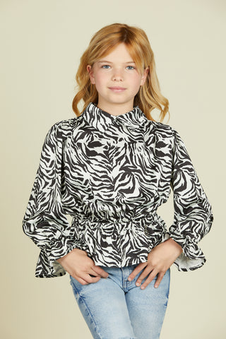 BEYBLADE/Long-sleeved blouse with ruffles and zebra pattern curls