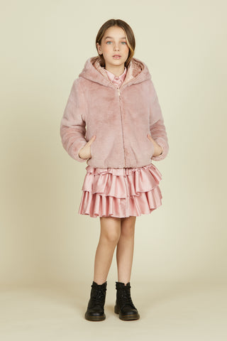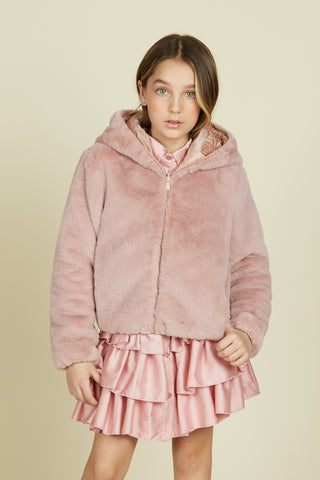FEDRINA eco fur long sleeve double face eco fur with pockets plus patch plus hood