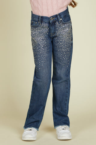IKETTE 1 bott. 5 ts. fringed full rhinestone denim trousers