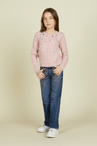 CIOKKY panta 1 bot.5ts. Frayed with broken denim cabochon application
