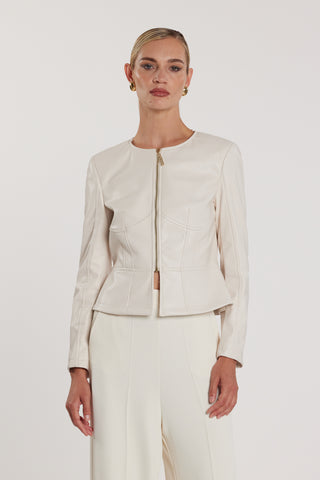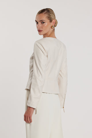 Giubbino ALFIO maniche lunghe tulle con inserti gros grain taglio vivo ecopelle