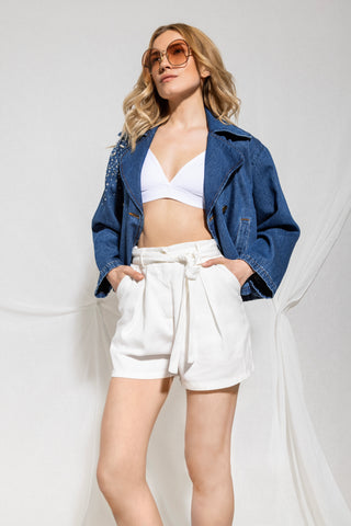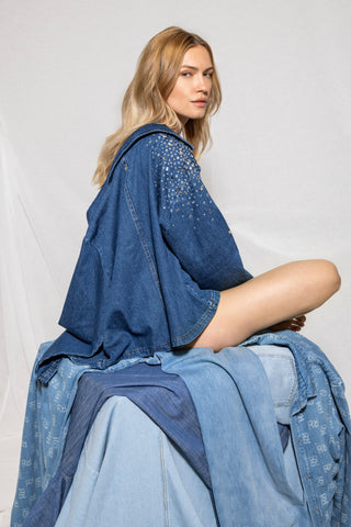 Giacca ESTELA_20 Corta M/L Doppio Petto con Appl.Pietre più Strass più Ts Denim