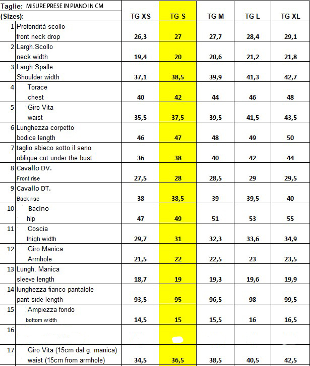 Antonia wears a size S/42 and her measurements are: