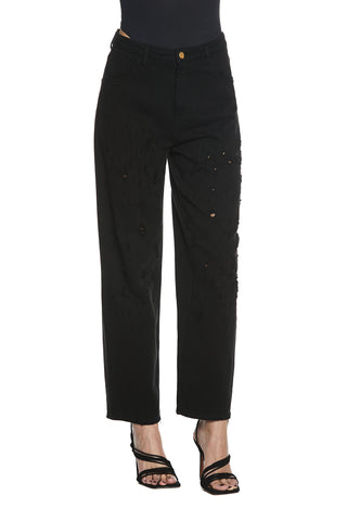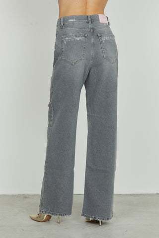 CARLA_1 trousers medium waist 4 pockets with micro tears baggy fit bull