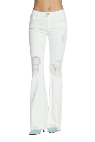 SHIFFER_1 trousers medium waist with tears plus fringed flaire fit bull bottom