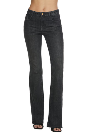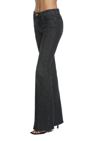 SHIFFER_3 medium waist 5 pocket trousers with fringed hem flaire fit denim black
