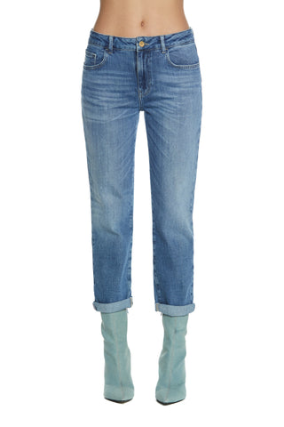 CINDY_22 medium waist 5 pocket trousers with mustache cigarette fit blue denim