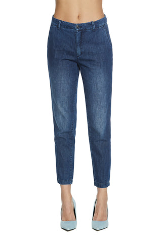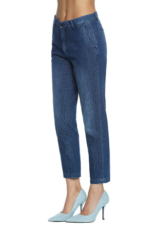 CAROL_2 medium waist chino slim fit blue denim trousers
