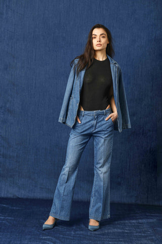 KRISTEN_2 v.medium chino flaire fit blue denim trousers
