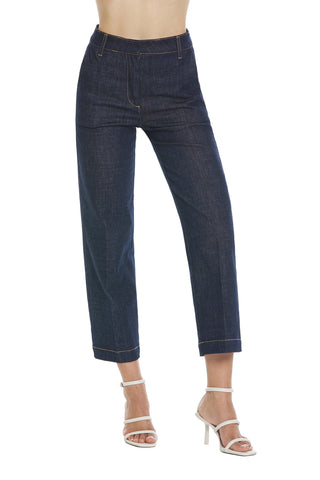 IVAR high waist trousers with flaps and buttons chinos straight leg blue denim