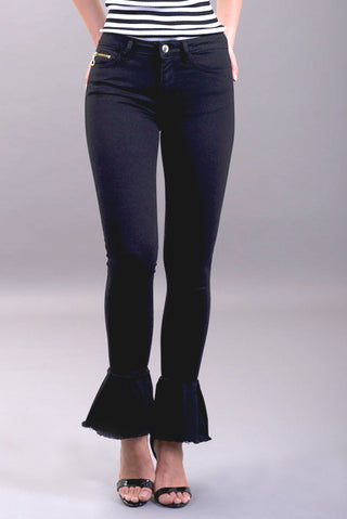 SHIFFER_22a medium waist 5 pocket trousers with rhinestone appl. flaire fit blue denim