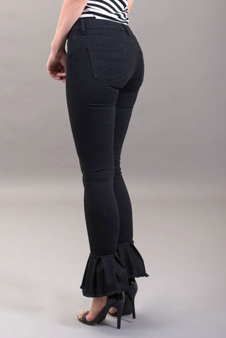 MASAKO jeans jumpsuit with zip plus pockets plus rings plus sequins