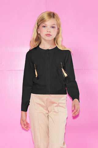 JESSA cardigan with pockets and hanging trimming chain profiles