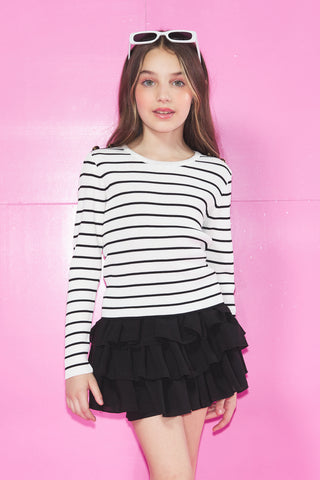 FARTEXIS sweatshirt with long, wide sleeves and ruching and ruffles with a print and glitter relish